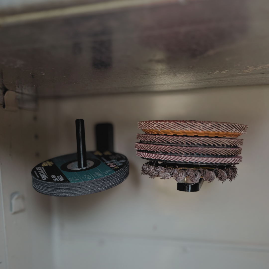 Built with a strong magnetic base, it holds up to multiple grinder wheels of various sizes, keeping them easily accessible while preventing damage or misplacement. Whether you're a mechanic, fabricator, or DIY enthusiast, this grinder wheel organizer helps streamline your workflow and maintain a clutter-free environment.